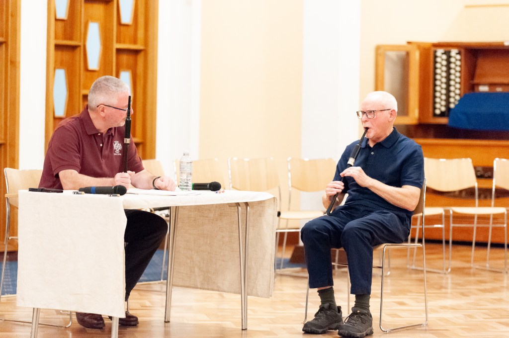 Neil’s teaching came from an informed place, through his vast knowledge of the music, the instrument and plenty of self-analysis of his own playing and teaching over the years. It was delightful to hear Neil talk about foundation of technique as he worked through each of the pipers’ pieces.