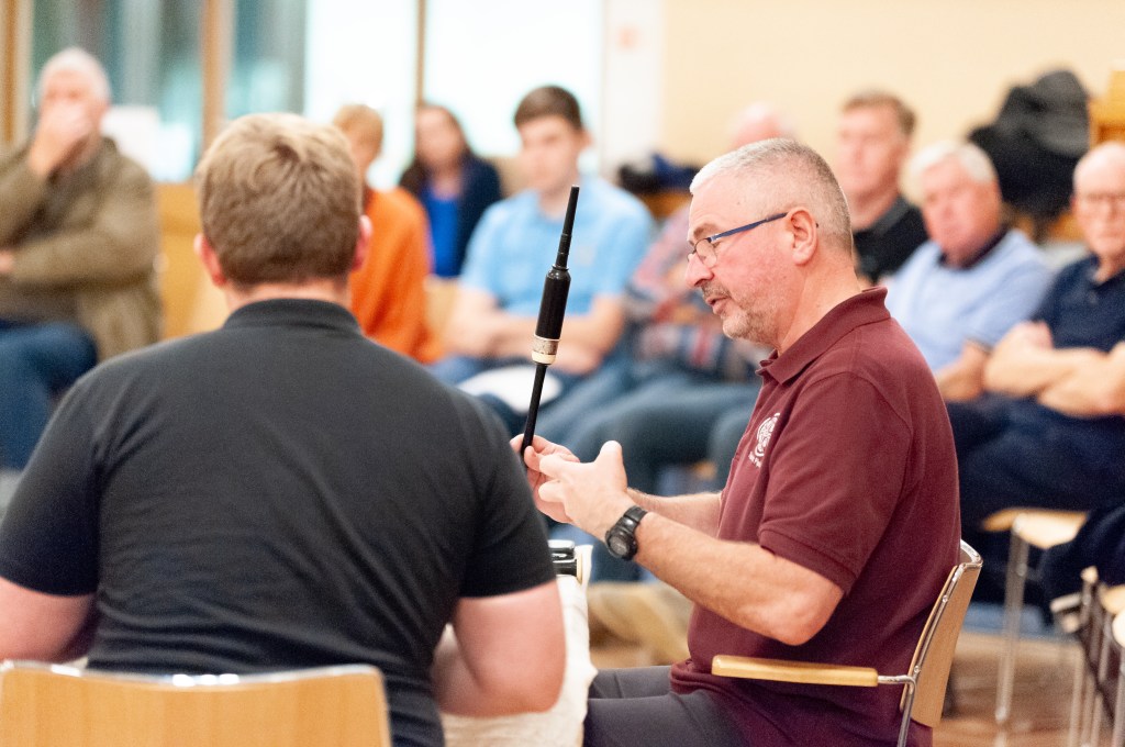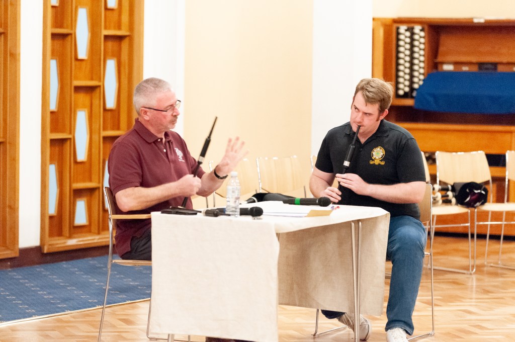 Neil talked about the integrity of rhythm in the music (the structure) and touched on expression in a pipe-band setting, versus solo playing. It was wonderful to see him work at a distance with the pipers and 1-2-1 at the table on the practice chanters.