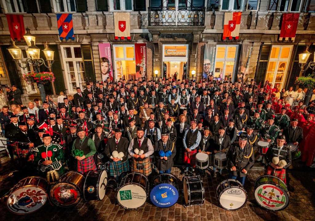 Following on from Romania, André Rieu asked David to lead the massed bands for the Vrijthof season in Maastricht in July 2023. This involved over 220 musicians from Belgium, Germany, England, Scotland and The Netherlands. Each of the 12 performances saw 150 pipes and drums on stage with André Rieu and his Johann Strauss Orchestra.